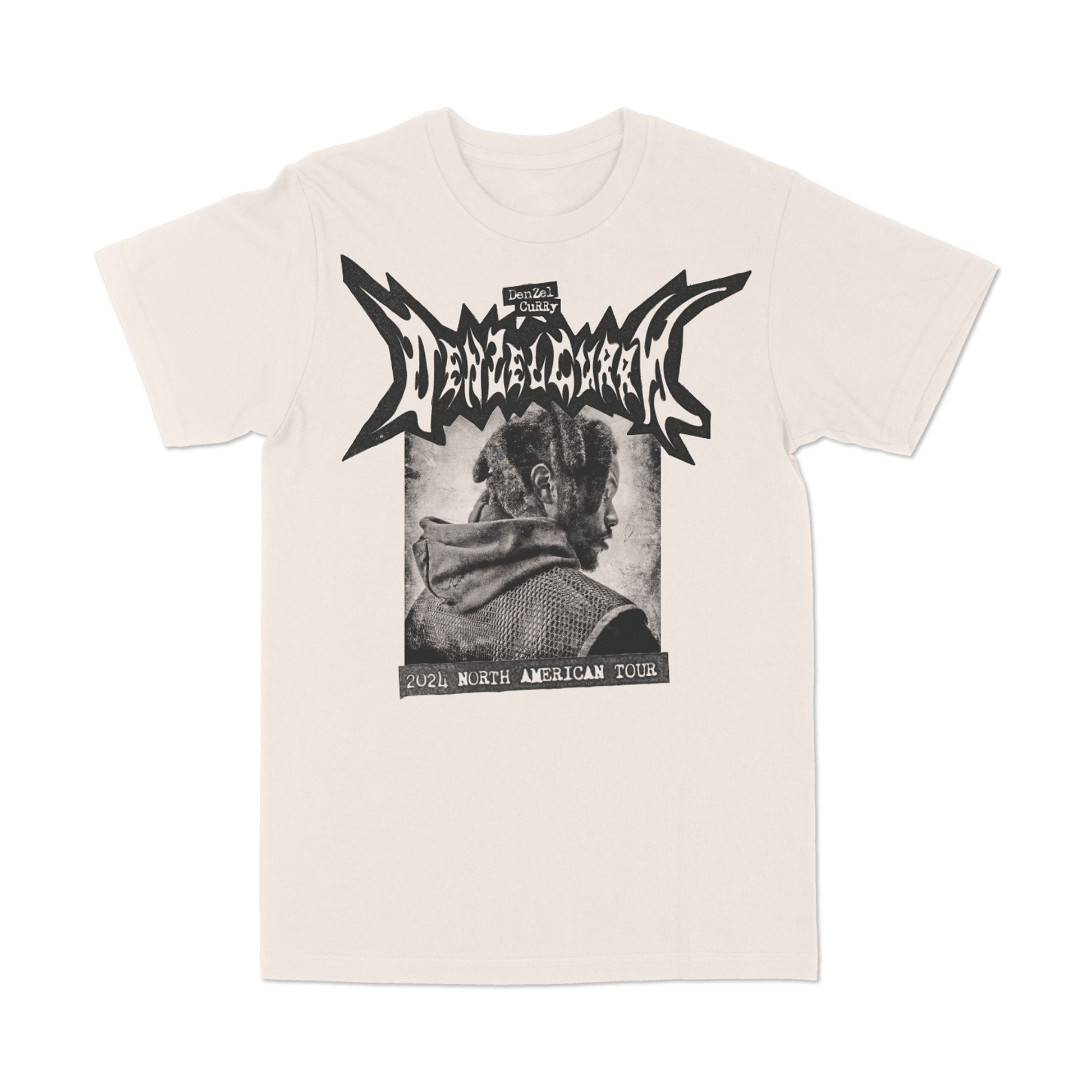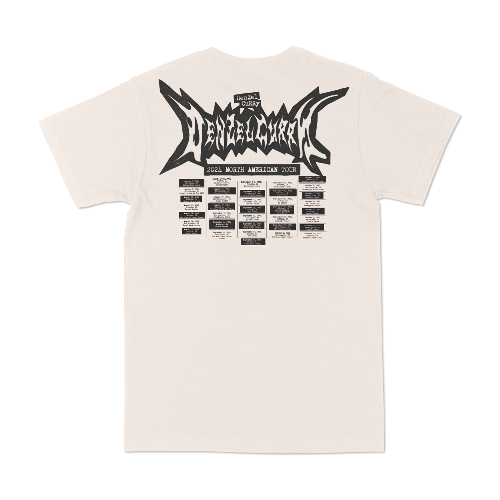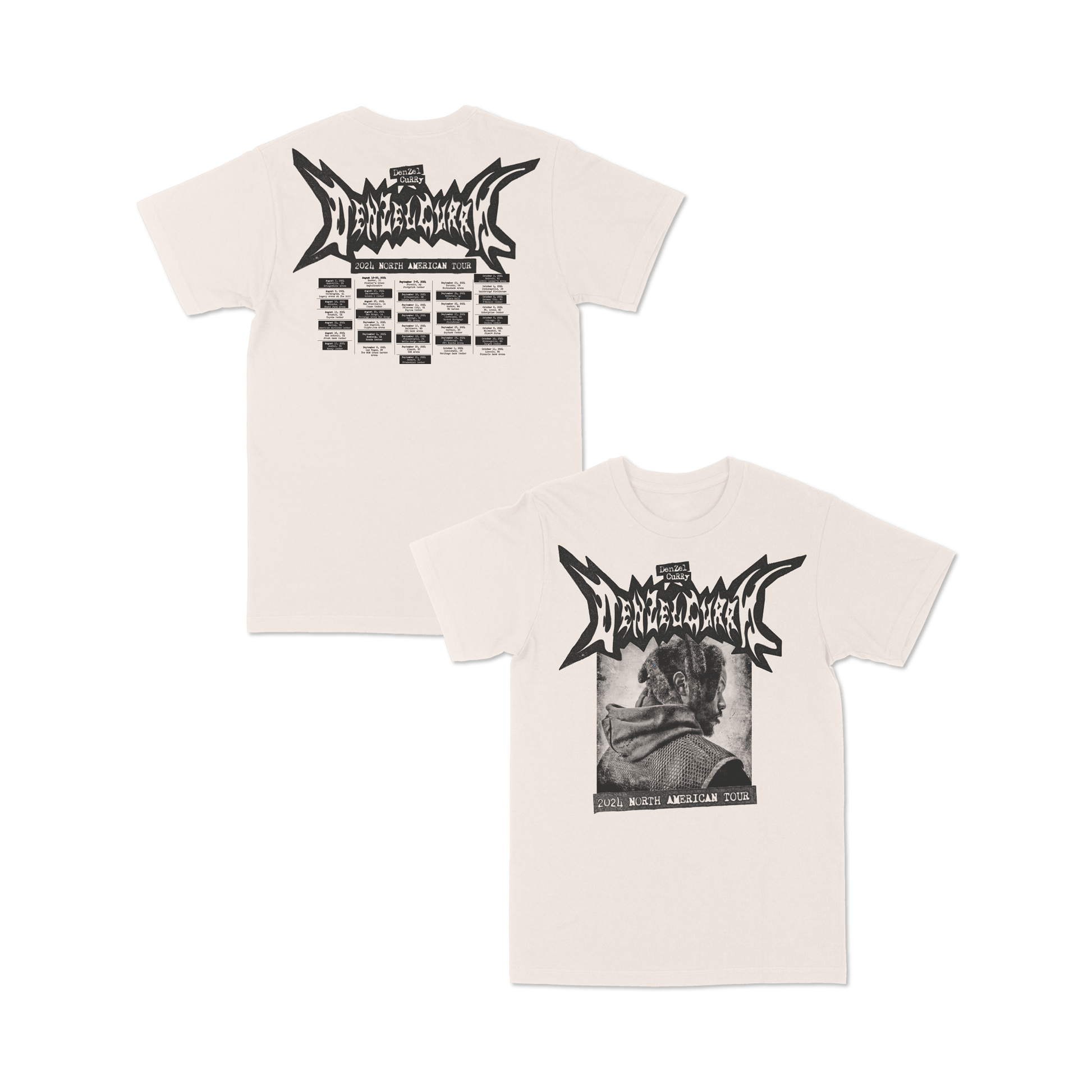 DC24 Photo Tour design printed on a cream 100% cotton t-shirt featuring tour dates on the back.