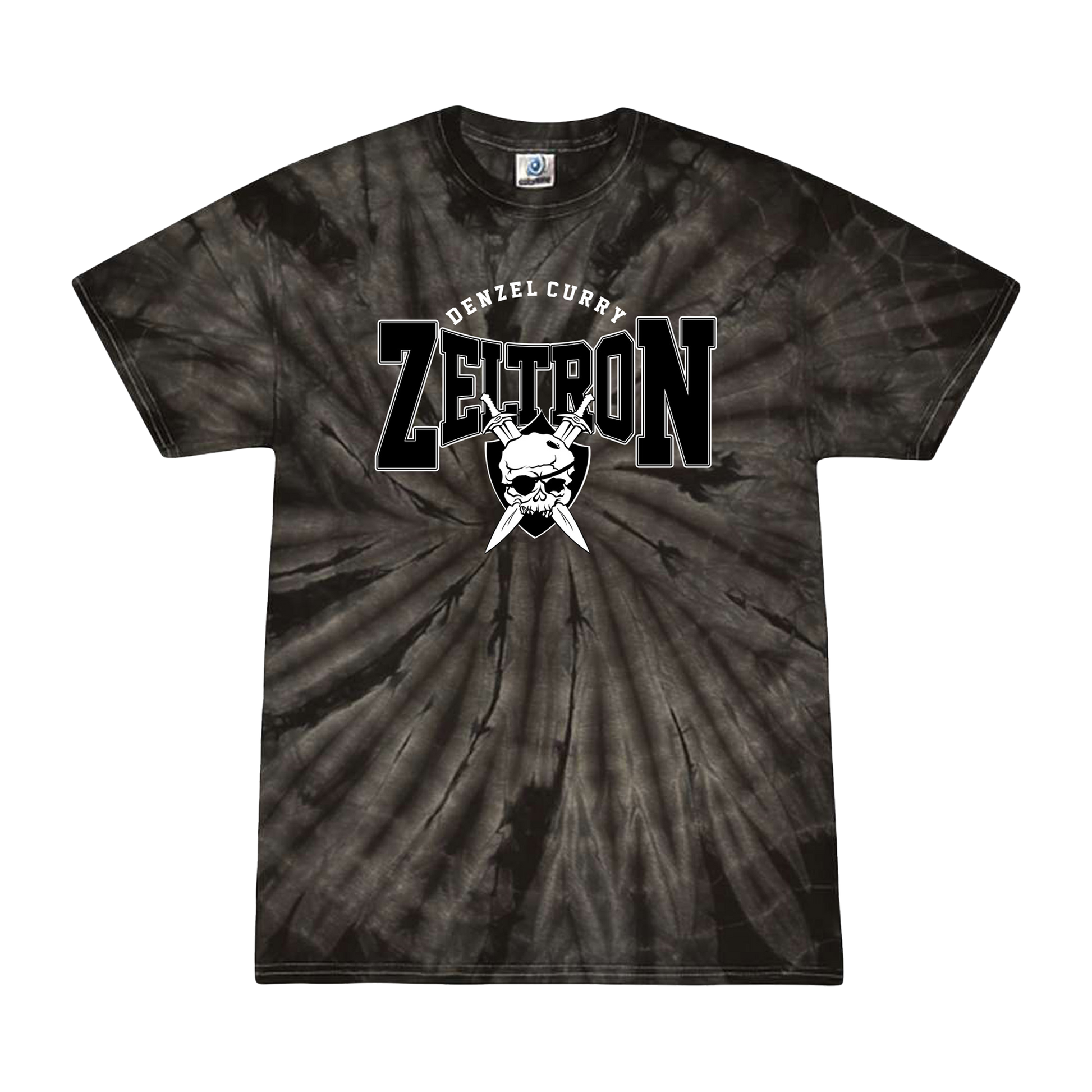 Zeltron design printed on a tie dye preshrunk 100% heavyweight cotton t-shirt.